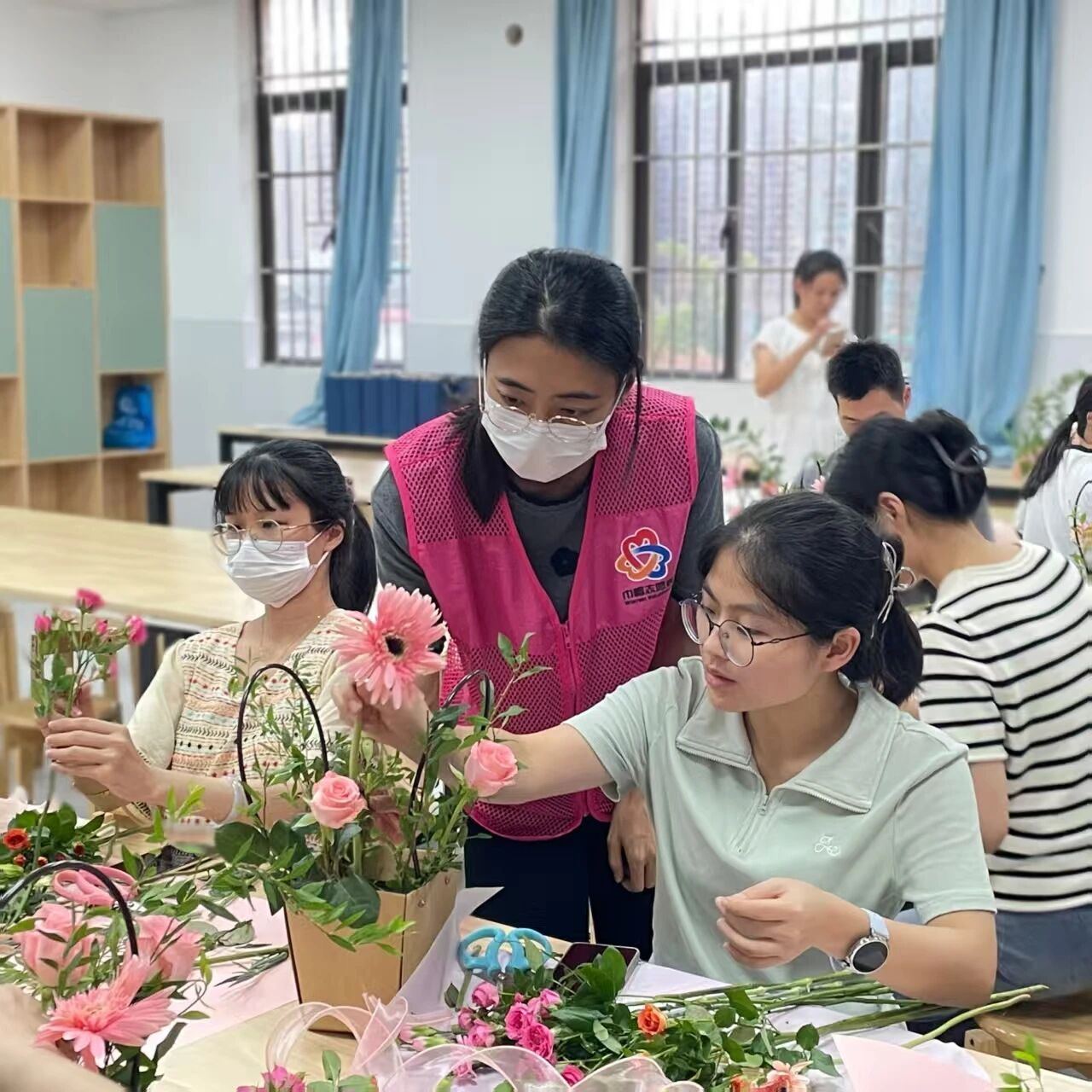 9月9日,典雅社區(qū)在轄區(qū)學(xué)校組織開展了“插花語師恩 丹青育桃李”主題活動(dòng)。社區(qū)工作人員將鮮花與插花材料送至教室,并特邀專業(yè)花藝師進(jìn)行現(xiàn)場指導(dǎo),為大家講解花卉品種、插花技法及色彩搭配等知識(shí)。在花藝?yán)蠋煹哪托闹笇?dǎo)下,教師們興致勃勃地發(fā)揮創(chuàng)意,精心修剪、組合,將不同色彩的花朵與綠葉巧妙搭配,一步步創(chuàng)作出一個(gè)個(gè)錯(cuò)落有致、別具一格的插花作品。活動(dòng)現(xiàn)場氣氛溫馨,大家互相交流插花心得、欣賞彼此作品,臉上洋溢著喜悅與成就感,在感受美、欣賞美、創(chuàng)造美的過程中,充分放松了身心,收獲了愉悅與滿足。